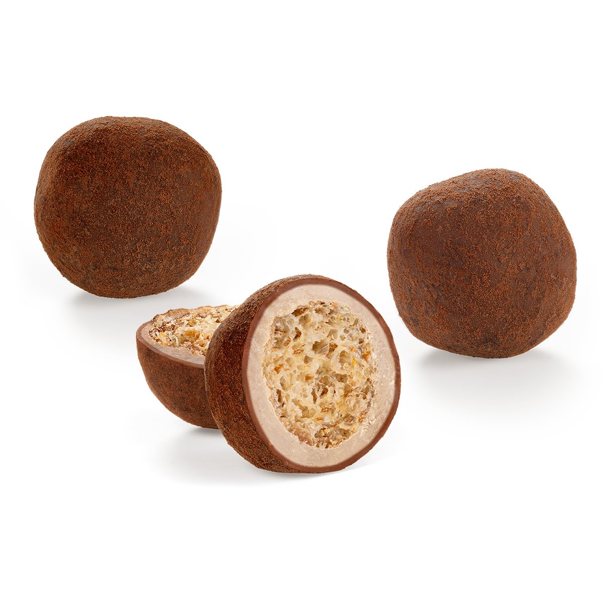 A stylish moment of indulgence for all coffee lovers. These refined dragées are a multi-layered composition of dark and white chocolate – both permeated with a typical coffee flavour. The external shell is coated in exquisite cocoa powder and delivers the first moment of indulgence. The interior surprises with a light and crispy pure spelt centre – for an exciting interplay of texture and taste. So every coffee break will become a short and indulgent ritual.