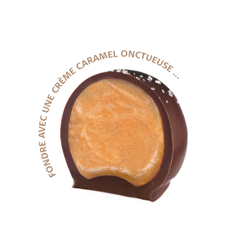 Comment ne pas craquer? Une délicate couche de fin chocolat suisse enveloppe un cœur fondant de caramel crémeux. Tout simplement irrésistible. La version à la fleur de sel est une merveille, l’harmonie parfaite des opposés.